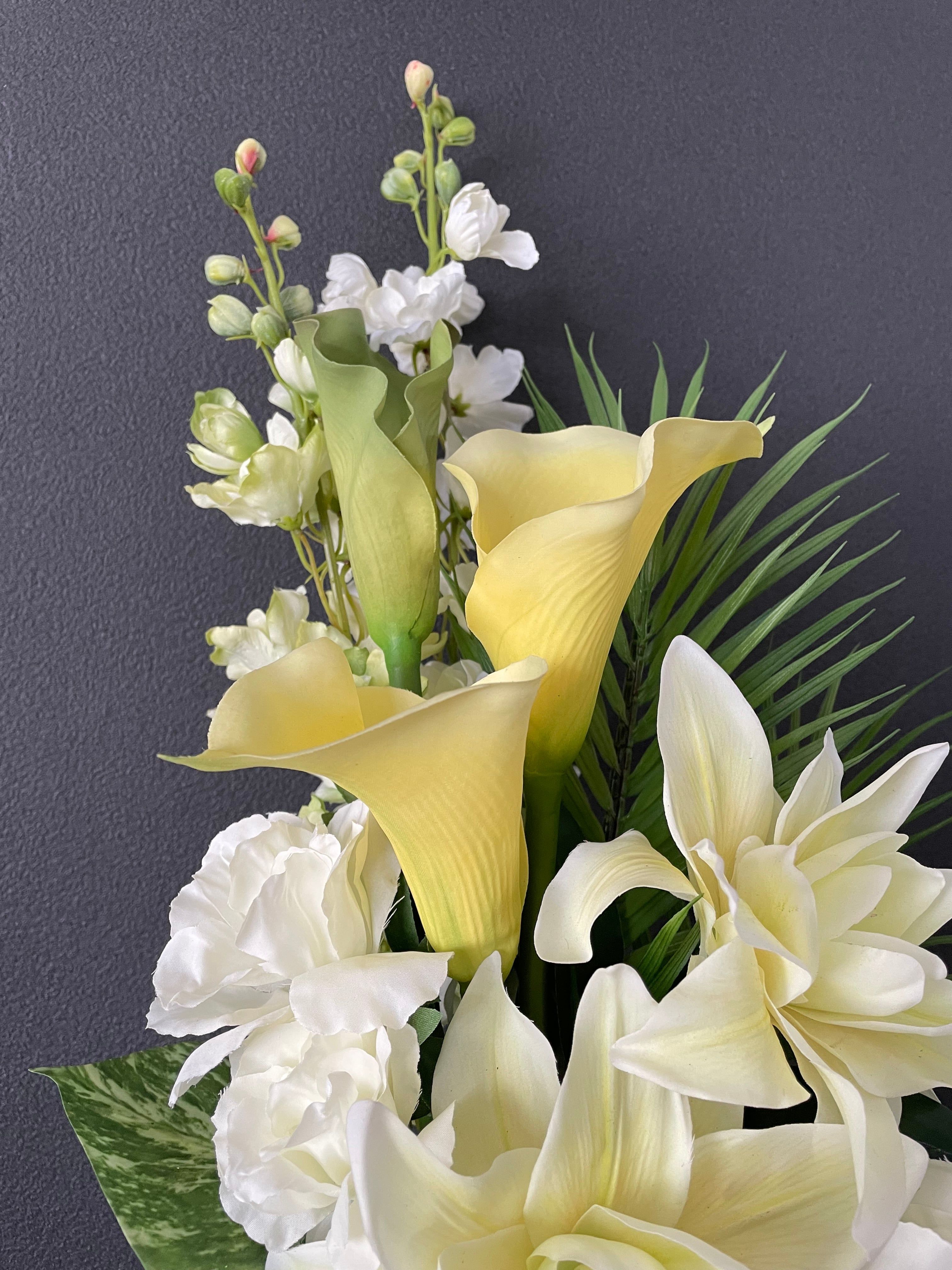 リアルで美しい上質な造花「アーティフィシャルフラワー」だけを使用し、フラワーデザイナーが細部まで美しさににこだわって、ひとつひとつ丁寧にお作りする造花仏花です。