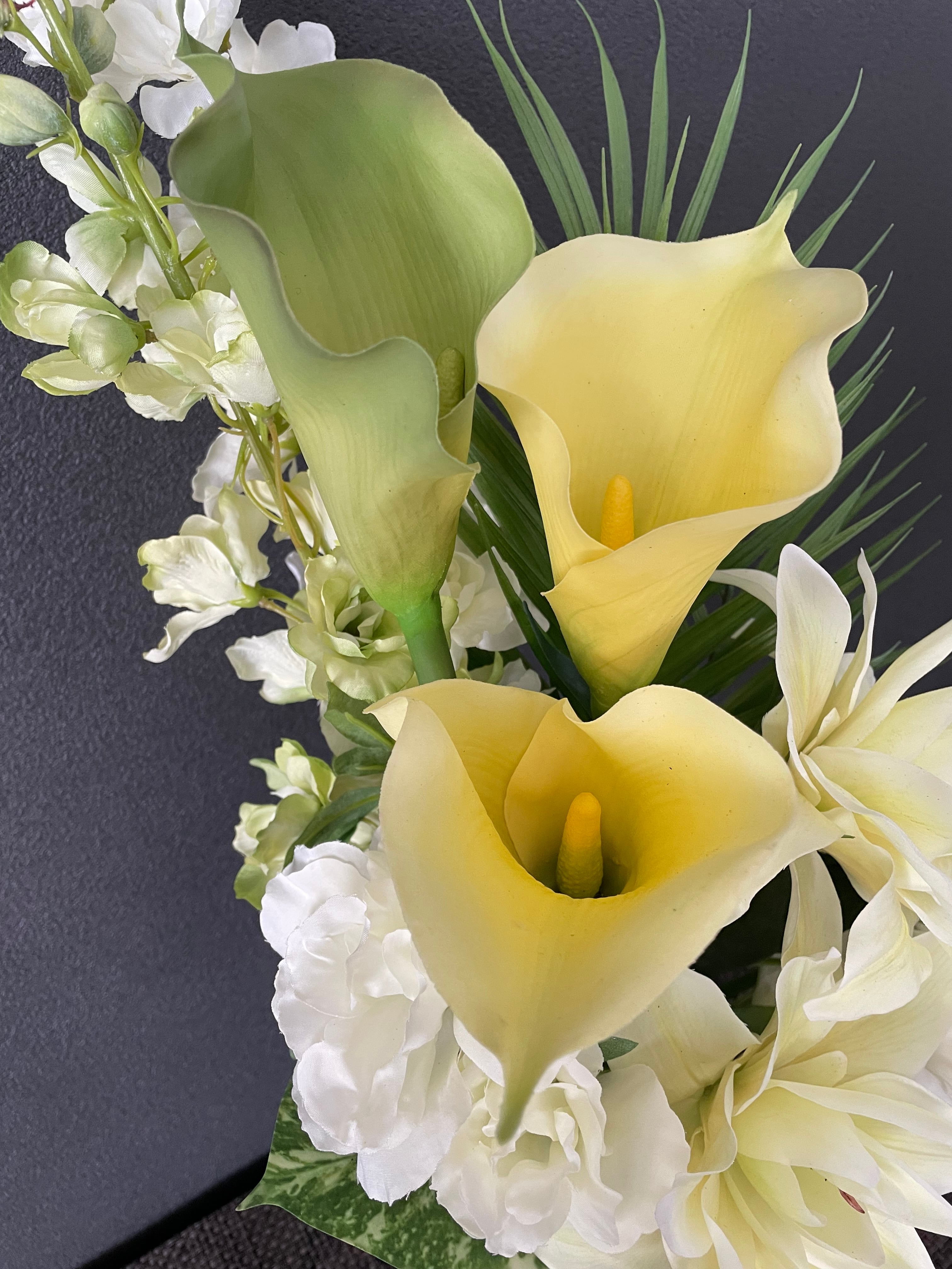 まるで生花のようにリアルで美しく精巧に作られた高品質な造花です。間近で見ても生花にしか見えない美しさです。当店ではその中でも上質なものだけを厳選して使用し、細部まで美しさにこだわってお作りしております。 アーティフィシャルフラワーの造花仏花は、劣化しにくく長持ちし、もちろんお水も不要で手間が要りません。 真夏など、生花を月に何度も交換するよりも大幅なコスト削減になります。