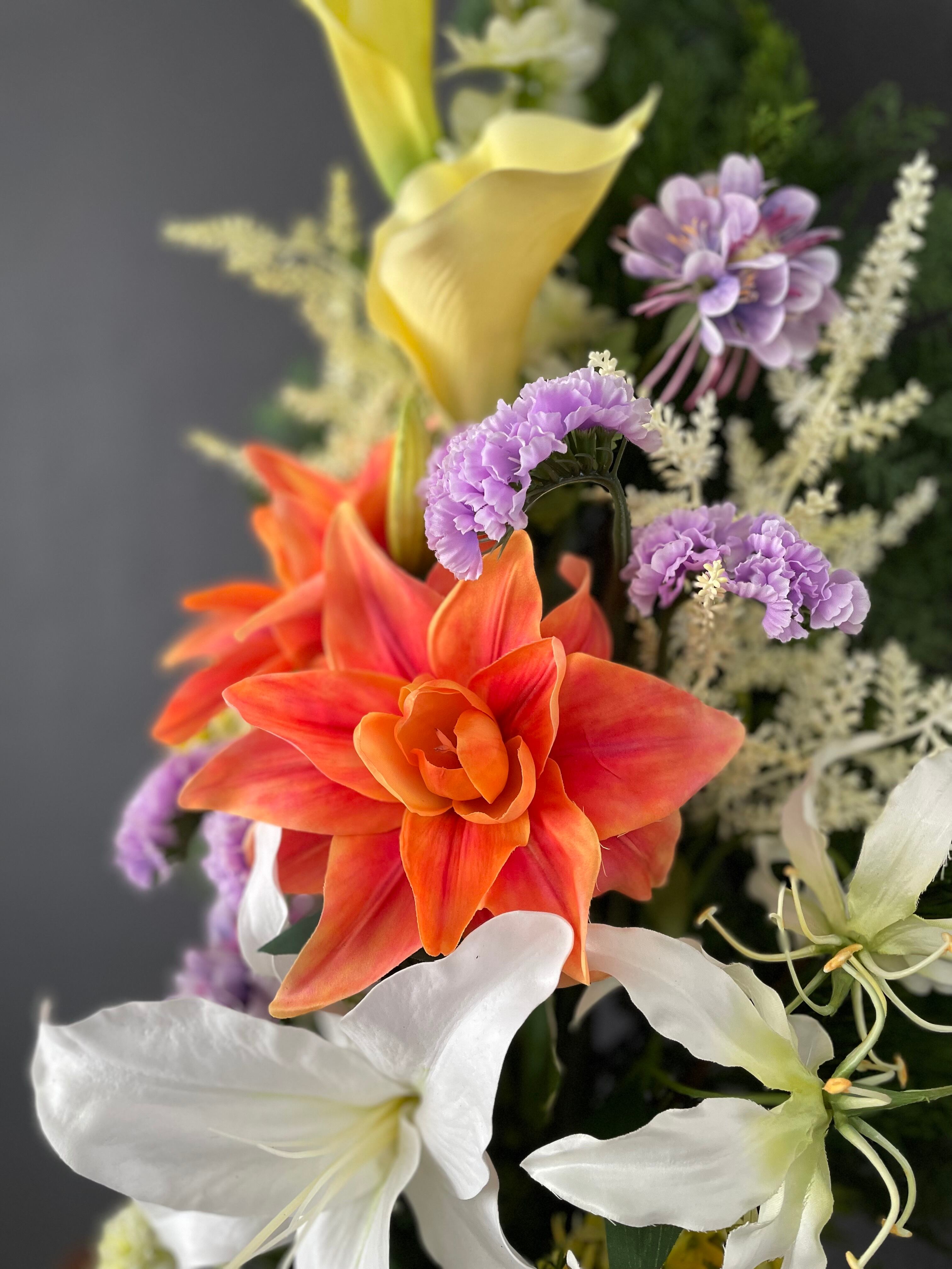 リアルで美しい上質な造花「アーティフィシャルフラワー」だけを使用し、フラワーデザイナーが細部まで美しさににこだわって、ひとつひとつ丁寧にお作りする造花仏花です。