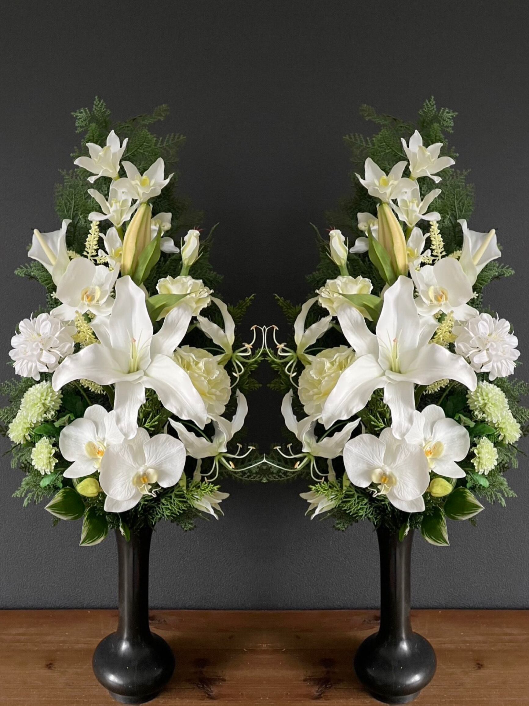 リアルで美しい上質な造花「アーティフィシャルフラワー」だけを使用し、フラワーデザイナーが細部まで美しさににこだわって、ひとつひとつ丁寧にお作りする造花仏花です。
