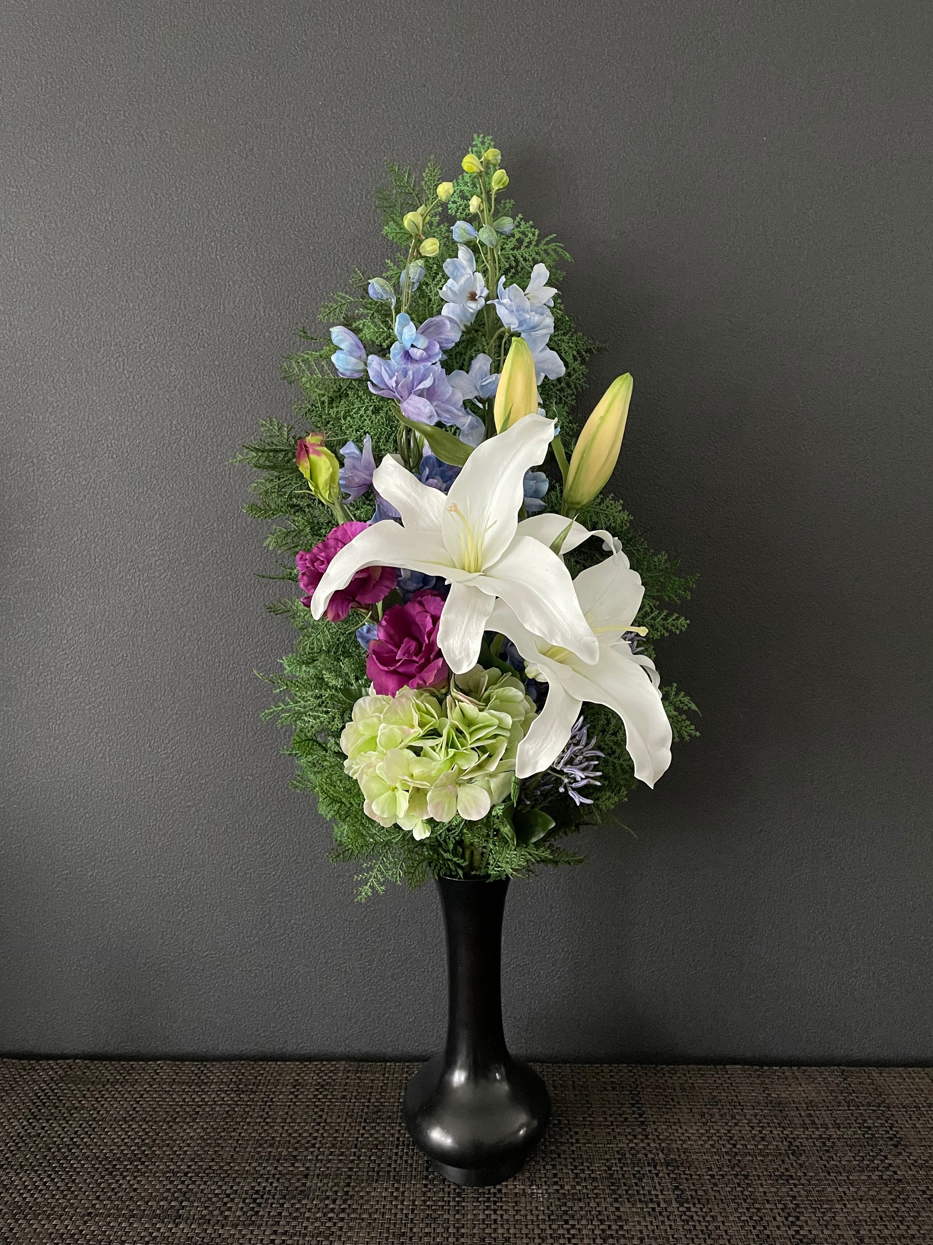 リアルで美しい上質な造花「アーティフィシャルフラワー」だけを使用し、フラワーデザイナーが細部まで美しさににこだわって、ひとつひとつ丁寧にお作りする造花仏花です。
