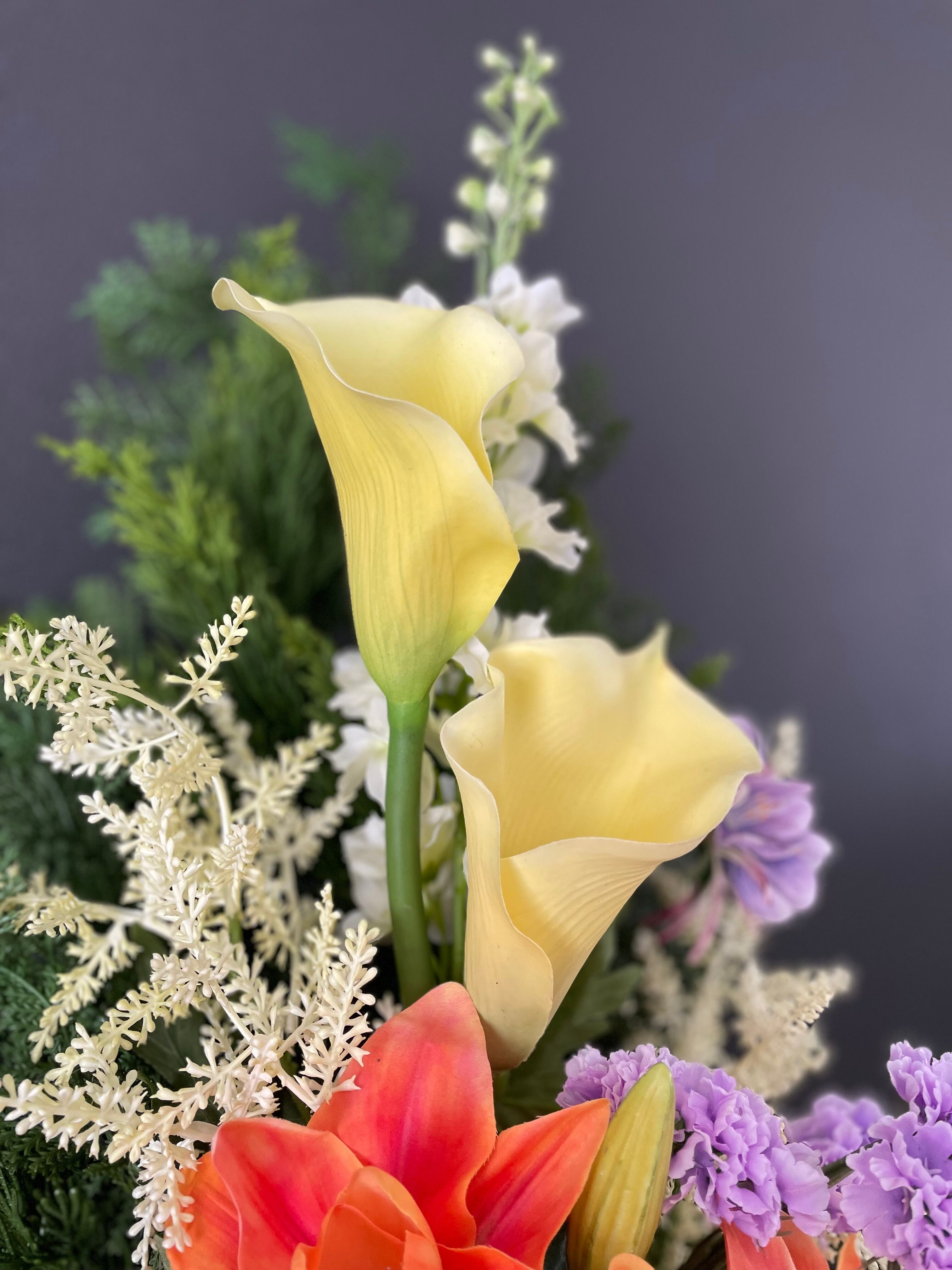 まるで生花のようにリアルで美しく精巧に作られた高品質な造花です。間近で見ても生花にしか見えない美しさです。当店ではその中でも上質なものだけを厳選して使用し、細部まで美しさにこだわってお作りしております。 アーティフィシャルフラワーの造花仏花は、劣化しにくく長持ちし、もちろんお水も不要で手間が要りません。 真夏など、生花を月に何度も交換するよりも大幅なコスト削減になります。