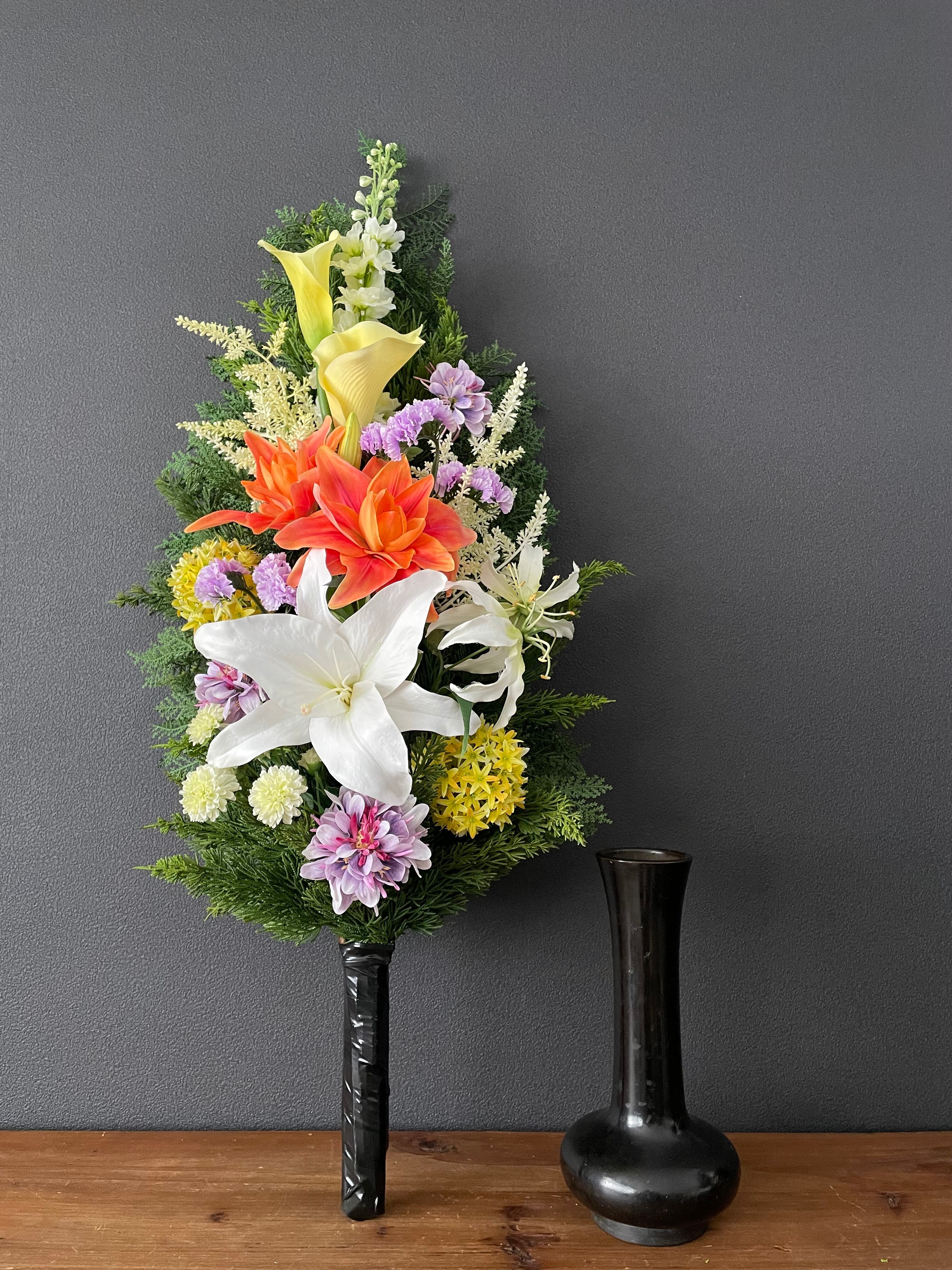 リアルで美しい上質な造花「アーティフィシャルフラワー」だけを使用し、フラワーデザイナーが細部まで美しさににこだわって、ひとつひとつ丁寧にお作りする造花仏花です。